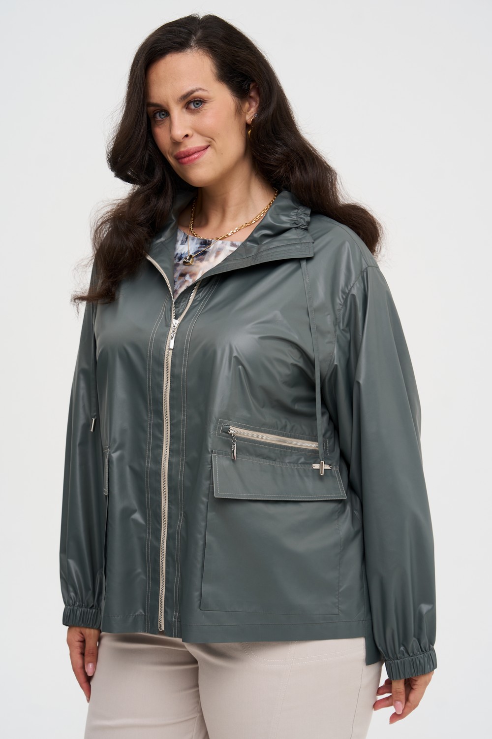 Женская демисезонная ментоловая куртка большого размера прямого силуэта с легким заужением книзу от бренда Диззи вэй (Dizzy way). Застежка - на двухзамковую молнию, что позволяет легко расстегнуть ее как сверху, так и снизу. Воротник - стойка, переходящая в капюшон. Карманы, удобно расположенные в подрезах, застегиваются на молнию.Есть внутренний кармашек, тоже на молнии. Подкладка в изделии - из ткани в мелкую полоску. Эта легкая весенняя куртка с разноуровневой линией низа выполнена в нежных расцветках из модной плащевой ткани с перламутровым оттенком; ее можно сочетать как со спортивными брюками, джинсами, так и с классическими вариантами брюк.