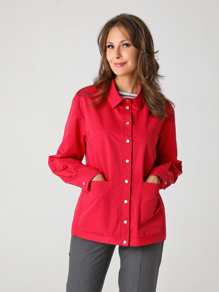 Описание: Стильный прямой жакет без подкладки с заниженной линией плеча. Застежка выполнена в виде кнопок. Воротник на стойке, рубашечного типа. У накладных карманов два функциональных входа. Ширина низа регулируется при помощи затяжки. Этот легкий жакет-рубашка подойдет на лето и весну. Такая одежда хорошо смотрится на любой фигуре и подходит на все случаи жизни. Жакет из хлопкосодержащей ткани можно носить с легкими платьями и спортивными брюками, с кроссовками и туфлями.