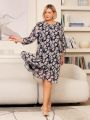 Женское шифоновое платье на поясе с цветочным принтом больших размеров