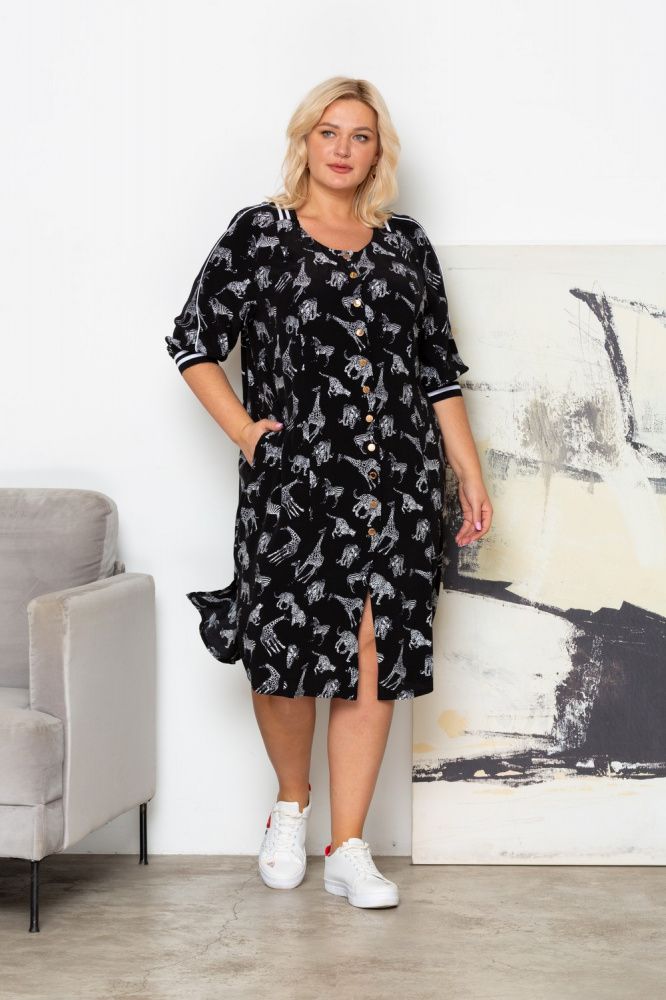 Описание: Женское черное платье из вискозы с животным принтом от бренда intikoma