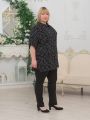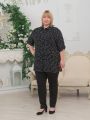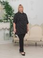 Описание: Женская черная рубашка прямого кроя из вискозы, рукав длиной до локтя больших размеров. Длина по спинке 85 см