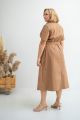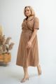 Платье, отрезное по линии талии, длиной ниже колен. Лиф прилегающий -нагрудные вытачки обеспечивают хорошую посадку. Воротник «английский», рукава втачные, короткие. Юбка расклешенная, с карманами в боковых швах. Платье застегивается спереди на петли и пуговицы, имитируя двубортную застежку. Имеется съемный пояс с пряжкой.