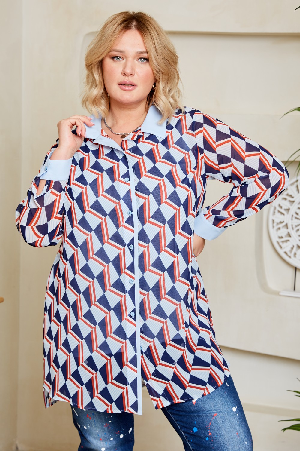 Описание: Воздушная двойка состоящая из удлиненной легкой блузки и однотонного топа без рукава из струящегося и нежного шифона. Данная модель станет любимой вещью в гардеробе так как можно сочитать легко с любым образом. Комплект подарит Вам комфорт, уверенность в себе и не оставит Вас без восхищенных взглядов. Детали: топ – без рукава, округлая горловина и разрезы по бокам. Блузка – удлиненная прямого силуэта с центральной застежкой на пуговицах, декоративный элемент воротник, манжеты и планка вдоль застежки из контрастного шифона в цвет топа, спинка длиннее переда, по бокам разрезы.