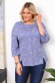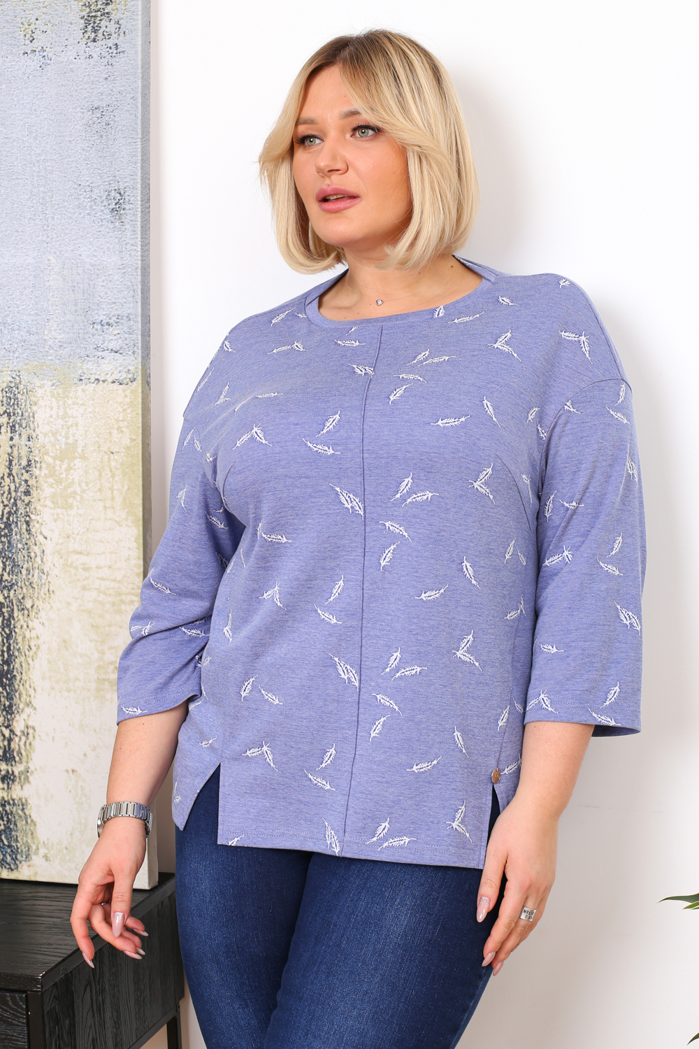 Описание: Женский голубой джемпер из смесовой ткани с принтом перышки больших размеров от бренда intikoma