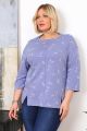 Женский голубой джемпер из смесовой ткани с принтом перышки больших размеров от бренда intikoma