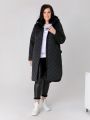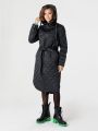 Модное пальто-рубашка прямого силуэта с втачными рукавами и застежкой на двухзамковую молнию. Воротник - стойка, переходящая в капюшон. Две пары прорезных карманов на кнопках удобно расположены в рельефном шве. Есть внутренний карман на молнии. Линию талии можно подчеркнуть завязывающимся поясом. Подкладка в изделии выполнена из ткани в мелкую полоску.