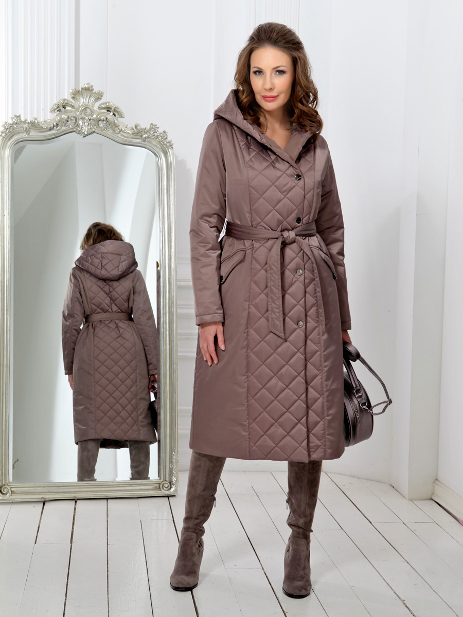 Женское демисезонное стеганое пальто большого размера в цвете капучино от бренда Диззи вэй (Dizzy way).Длинное пальто прямого силуэта с капюшоном и смещенной застежкой на молнию и кнопки. Это демисезонное пальто подходит для женщин и девушек любого возраста. Свободный прямой силуэт можно легко изменить с помощью съемного завязывающегося пояса. Прорезные карманы с клапаном застегиваются на кнопку. Есть внутренний кармашек на молнии. Плащевая ткань имеет водоотталкивающую пропитку, которая выдержит небольшой осенний дождь или снег. Хорошо зарекомендовавший себя холлофайбер плотностью 220 гр/м защитит от холода и ветра. Подкладка в изделии выполнена из ткани в мелкую полоску.