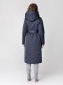 Женское демисезонное темно-синее стеганое пальто большого размера от бренда Диззи вэй (Dizzy way). Длинное пальто прямого силуэта с капюшоном и смещенной застежкой на молнию и кнопки. Это демисезонное пальто подходит для женщин и девушек любого возраста. Свободный прямой силуэт можно легко изменить с помощью съемного завязывающегося пояса. Прорезные карманы с клапаном застегиваются на кнопку. Есть внутренний кармашек на молнии. Плащевая ткань имеет водоотталкивающую пропитку, которая выдержит небольшой осенний дождь или снег. Хорошо зарекомендовавший себя холлофайбер плотностью 220 гр/м защитит от холода и ветра. Подкладка в изделии выполнена из ткани в мелкую полоску.