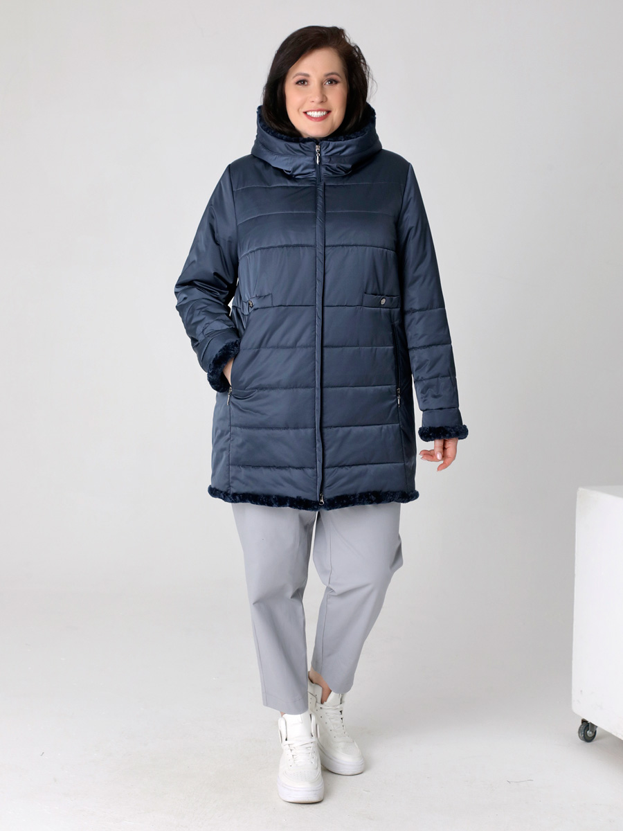 Женская демисезонная синяя куртка большого размера от бренда Диззи вэй (Dizzy way). Куртка прямого силуэта с застежкой на двухзамковую молнию подойдет для женщин и девушек любого возраста. Воротник - стойка, переходящая в капюшон. Две пары карманов, удобно расположенные в рельефных швах, застегиваются на молнию и кнопки. Есть внутренний кармашек на молнии Внутренняя отделка стойки, низ втачного рукава и низ изделия оформлены мягким искусственным мехом. Эта стильная удлиненная куртка-парка выручит Вас осенью, весной и ранней зимой. Плащевая ткань имеет водоотталкивающую пропитку, которая выдержит небольшой дождь, снег и ветер. Хорошо зарекомендовавший себя утеплитель Холлофайбер плотностью 200 гр/м защитит от холода. Подкладка в изделии - в мелкую полоску.