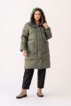 Женское зимнее пальто больших размеров в цвете хаки от бренда Modress (Модресс). Пальто прямого силуэта, длиной до середины колен. Капюшон втачнойсо стойкой и декоративным шнуром. Рукава реглан с трикотажными манжетами. Боковые карманы накладные с клапанами, застегиваются на кнопки. По низу изделия проходит кулиска. Пальто застегивается на тракторную молнию и ветрозащитную планку с кнопками. Выполнено из курточной ткани с водоотталкивающей пропиткой.