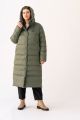 Женское зимнее пальто больших размеров в цвете хаки от бренда Modress (Модресс). Пальто прямого силуэта. Капюшон втачнойна небольшой стойке. В капюшоне есть кулискас резинкой. Рукава втачные двухшовные. Боковые карманы прорезные с листочкой. В боковых швах разрезы с тракторными молниями. Пальто застегивается на внутреннюю тракторную молнию и потайные кнопки. Изделие выполнено из курточной ткани с водоотталкивающей пропиткой.