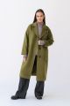 Женское демисезонное зеленое драповое однобортное пальто большого размера от бренда Modress (Модресс). Пальто прямого силуэта с английским воротником, длиной чуть ниже колен больших размеров от бренда Modress. Рукава спущенные. Боковые карманы накладные, прямоугольной формы с закругленными углами. Пальто застегивается на петли и пуговицы. В среднем шве спинки выполнена шлица. Ткань верха с содержанием шерсти, подкладка из поливискозы.