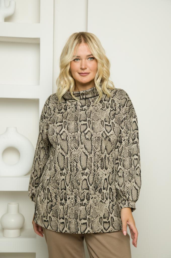 Описание: Женская туника из смесовой ткани сл змеиным принтом больших размеров от бренда TERRA