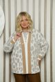 Женский кардиган больших размеров из смесовой ткани в нежно-бежевом цвете с леопардовым принтом о бренда TERRA. Образ дополнен рубашкой ОК23-031 и брюками ОК23-027