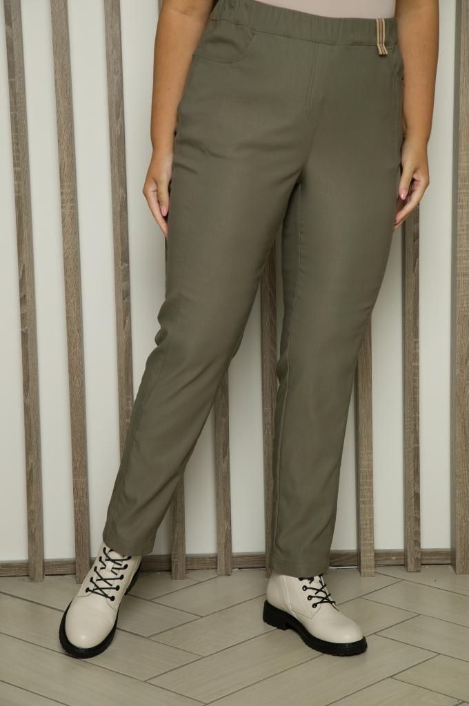 Описание: Женские осенние брюки больших размеров в цвете хаки из смесовой ткани от бренда TERRA. ОБраз можно дополнить сильной рубашкой в полоску Ок23-031