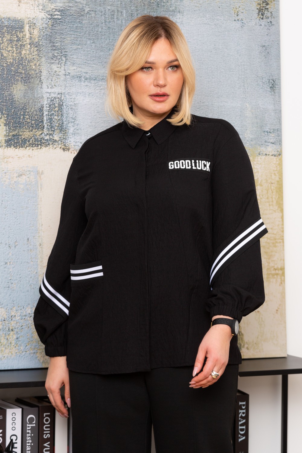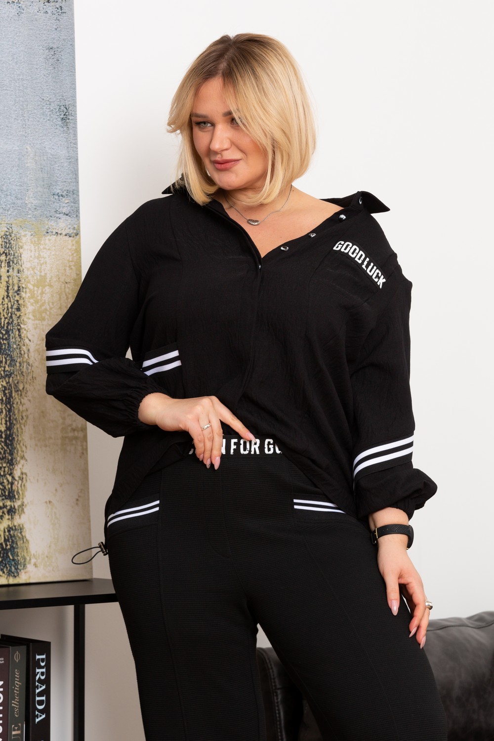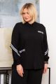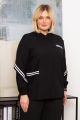 Женская черная блуза больших размеров из вискозы с вставкаами полосками и надписью от бренда intikoma (интикома)