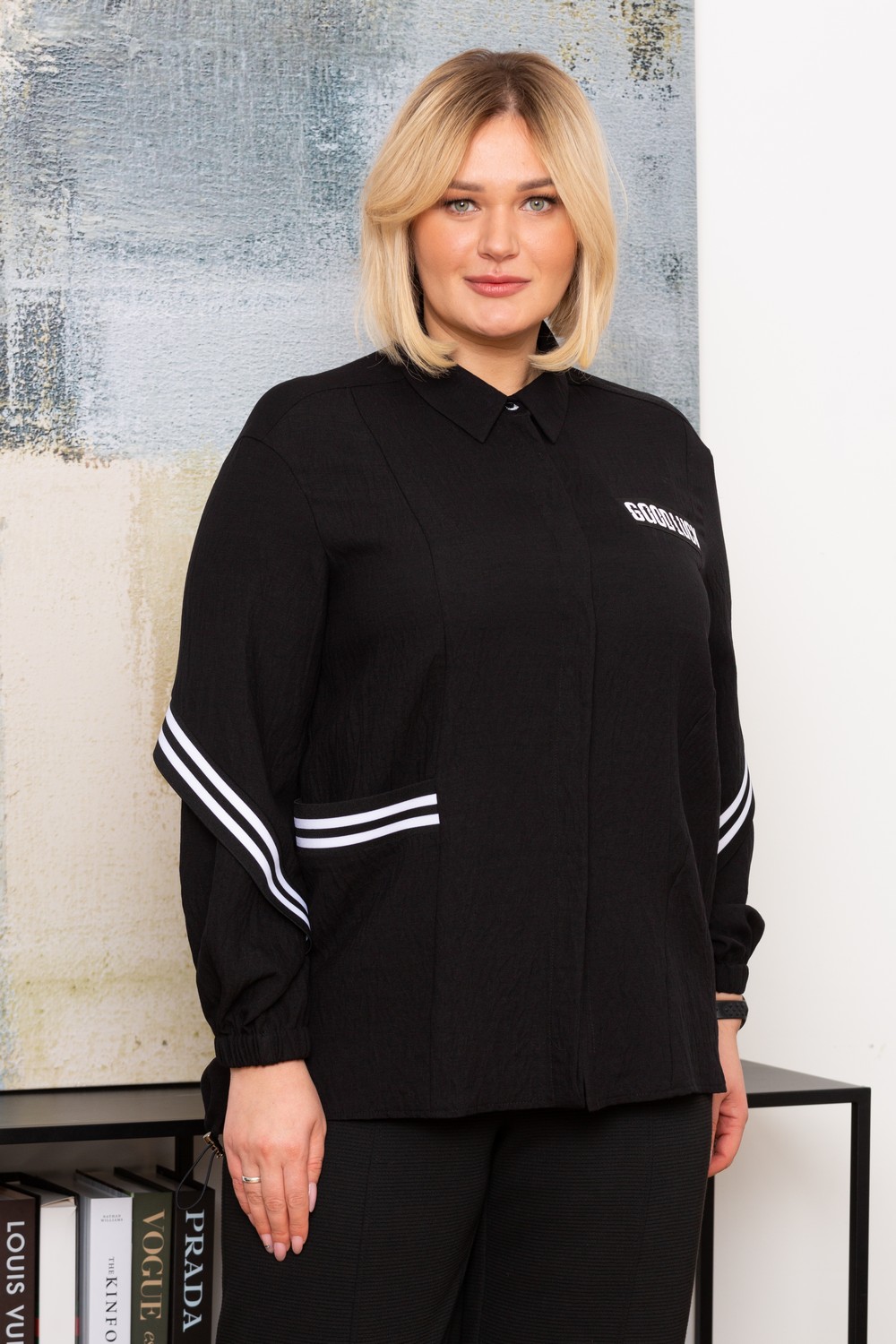 Описание: Женская черная блуза больших размеров из вискозы с вставкаами полосками и надписью от бренда intikoma (интикома)