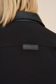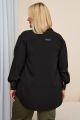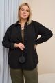 Женская черная классическая блузка больших размеров с вставками из экокожи от бренда intikoma (Интикома). Можно комбинировать с брюками, юбками, платьями. Детали: верхний воротник и манжет выполнен из мягкой эко кожи, застежка центральная на пуговицах, линия плеча на месте, полная длина рукава, манжет на пуговицах, по спинке кокетка с эксклюзивной нашивкой.