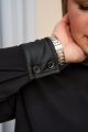 Описание: Женская черная классическая блузка больших размеров с вставками из экокожи от бренда intikoma (Интикома). Можно комбинировать с брюками, юбками, платьями. Детали: верхний воротник и манжет выполнен из мягкой эко кожи, застежка центральная на пуговицах, линия плеча на месте, полная длина рукава, манжет на пуговицах, по спинке кокетка с эксклюзивной нашивкой.