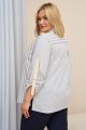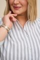 Женская блузка больших размеров в серую полоску от бренда intikoma (Интикома). Оригинальная модель блузки идеальный вариант для офиса и повседневной жизни. Блузку можно носить как второй слой поверх топа, футболки,джемпера, а также как самостоятельное изделие дополняя брюки юбки и кюлоты. Полоска вытягивает и стройнит силуэт. Детали: центральная застежка, длинный рукав, который можно регулировать с помощью паты и полуколец. По спинке кокетка, складка с декоративной патой на пуговице, по бокам разрезы.