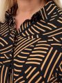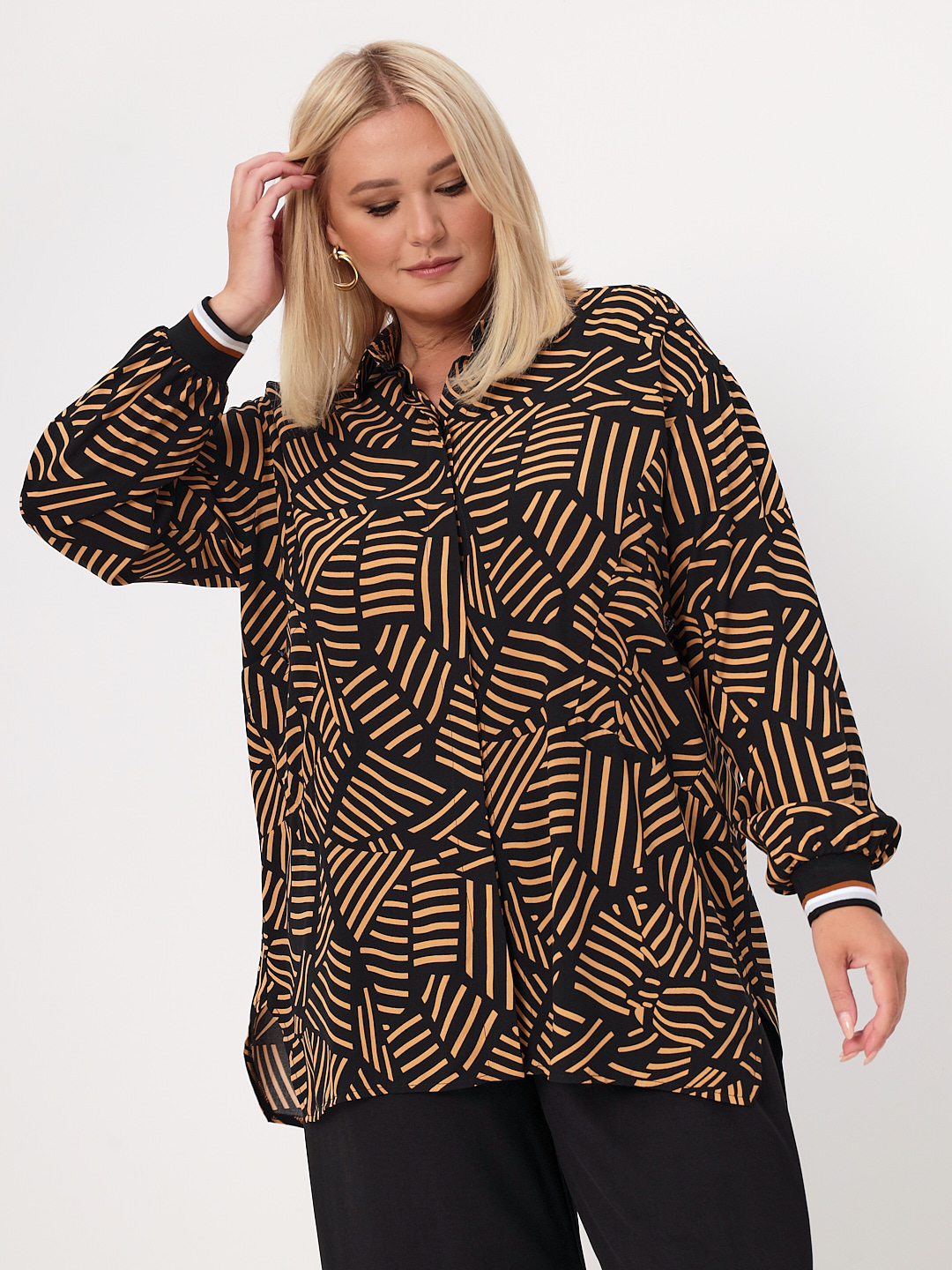 Женская коричневая удлиненная блузка больших размеров с геометрическим принтом из вискозы от бренда intikoma (Интикома). Удлиненная блузка идеальная база в Вашем гардеробе. Прямой крой делает образ лаконичным. Абстрактный принт добавляет образу динамики.Модель станет основой городских повседневных комплектов и будет уместна в офисе, на прогулке, на встрече. Детали: прямой удлиненный силуэт, центральная супатнаязастежка на пуговицах, спущенная линия плеча, рубашечный воротник, широкий рукав на эластичной манжете,по спинке складка. Блузка представлена в двух цветах коричневом и черном.