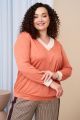 Женский терракотовый джемпер больших размеров свободного кроя из смесовой ткани от бренда intikoma (Интикома). Удобный, стильный джемпер в актуальных расцветках – терракот, экрю. Теплый, приятный к телу материал согреет Вас в прохладную погоду. Джемпер свободного кроя на манжете по низу. Длинные рукава на манжете, горловина v-образная украшена эластичным подвязом.