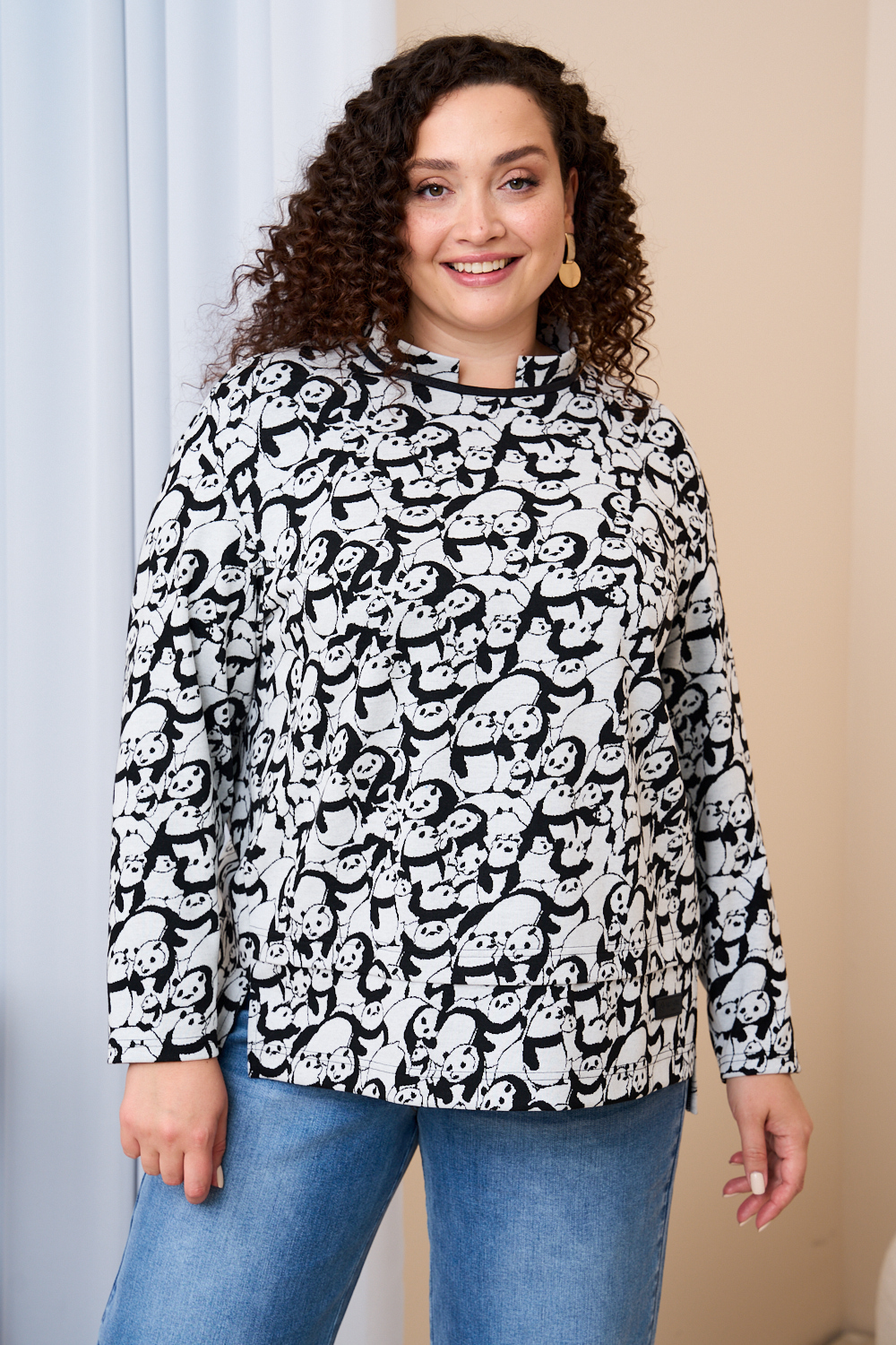 Описание: Женский джемпер больших размеров с принтом панда из трикотажа от бренда intikoma (Интикома). Уютный джемпер с принтом Панда из качественного трикотажа с позволит Вам выглядеть модно и современно при этом чувствовать комфорт и тепло. Длинные рукава со спущенной линией демонстрирует расслабленный и непринужденный образ. Детали: свободный прямой силуэт, длинный рукав, округлая горловина декоративной стойкой, по бокам разрезы.