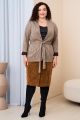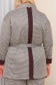 Женский бежевый трикотажный жакет больших размеров в мелкую клетку с поясом на пуговицах от бренда intikoma (Интикома). Стильный образ можно составить с брюками 723110. Трикотажный жакет на пуговицах, с поясом и без воротника, манжет на рукаве на отворот из контрастной ткани. По спинке отделочная деталь в форме полосы, которая очень удачно удлиняет силуэт, карманы по переду в рельефах, жакет без подклада. Идеальная посадка, высокое качество материала, универсальная базовая модель создает стильный повседневный образ.
