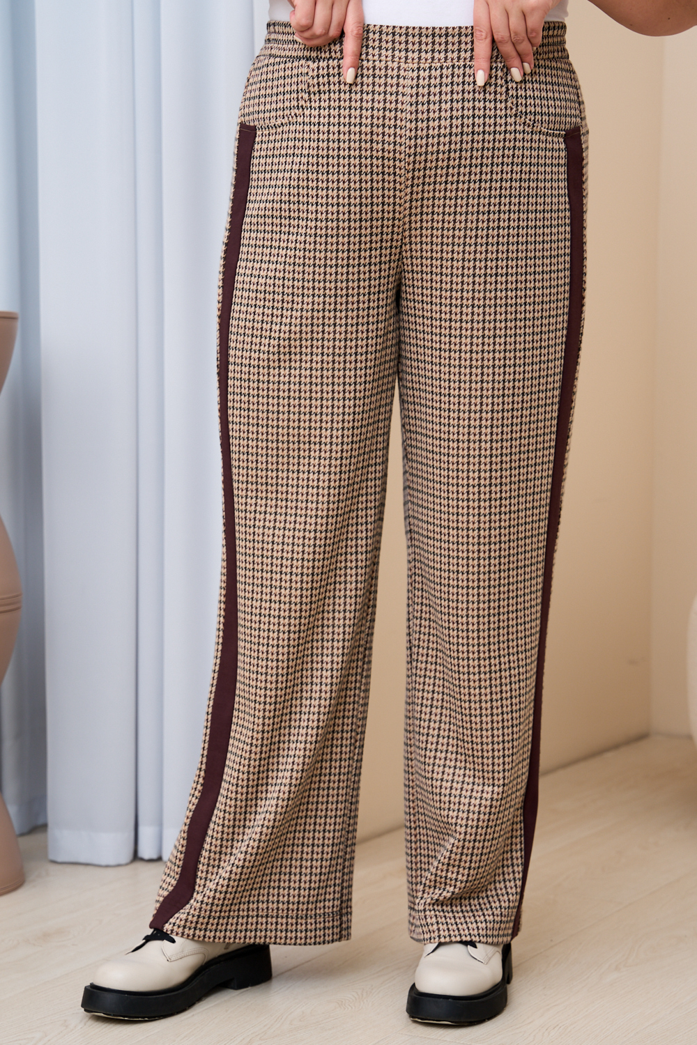 Женские бежевые в клетку брюки палаццо больших размеров от бренда intikoma (Интикома). Универсальный фасон брюк палаццо, который подчеркивает женственность образа, контрастный ломпас по боку стройнит и вытягивает силуэт. Эта модель должна быть у каждой современной женщины,так как идеально сидит на любых формах фигуры и сочетается с различными вещами. Брюки палаццо остаются модным трендом и успешно конкурируют с традиционными моделями. Детали: поят на резинке, карманы по переду, без молнии.