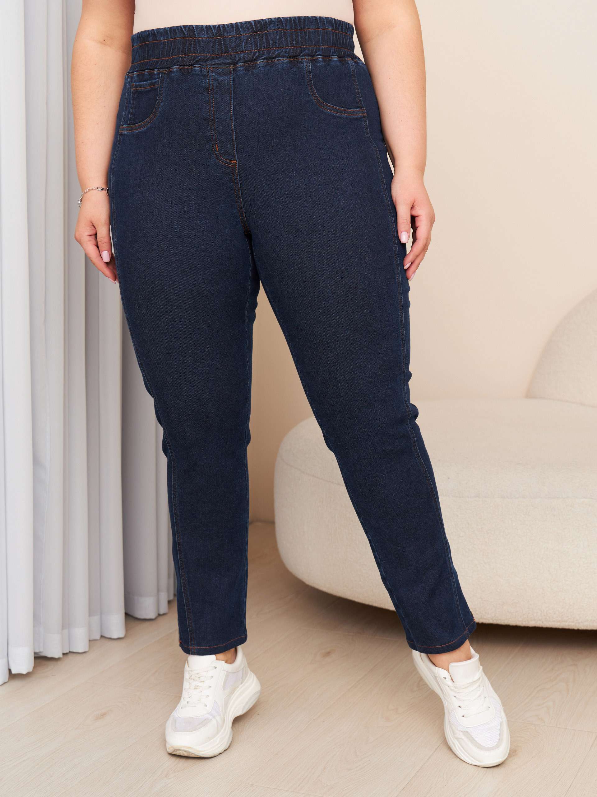 Женские синие джеггинсы больших размеров облегающие от бренда Intikoma (Интикома). Джинсовые джеггинсы идеально сядут на любой тип фигуры. Стильные джеггинсы отлично вписываются в повседневный гардероб, идеально подходят на каждый день и позволяют создавать много интересных образов. Хорошо тянутся и позволяют утянуть лишние сантиметры. Детали: пояс на широкой резинке, без застежки, по переду иммитация карманов, по боковому шву широкий ломпас из основной ткани, по низу нет молнии, сзади фигурная кокетка и накладные карманы с вышивкой. Модель представлена в двух расцветках черный и синий.
