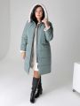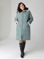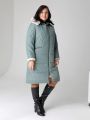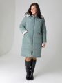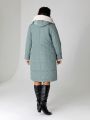 Описание: Женское зимнее серо-зеленое пальто больших размеров прямого силуэта с капюшоном от бренда dizzy way (Диззи вэй)