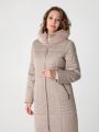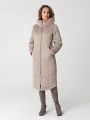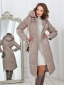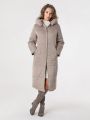 Описание: Женское зимнее темно-бежевое пальто больших размеров полуприлегащего силуэта от бренда dizzy way (Диззи вэй)