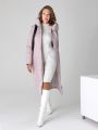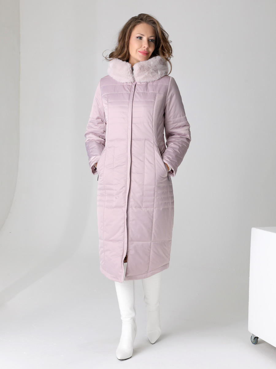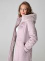 Женское зимнее серо-розовое пальто больших размеров полуприлегащего силуэта от бренда dizzy way (Диззи вэй)