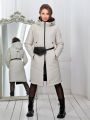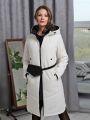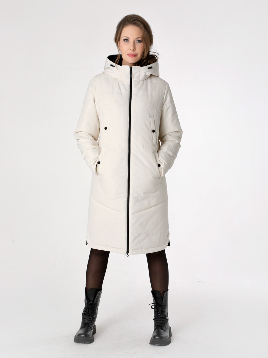 Женское зимнее белое пальто большх размеров прямого силуэта от бренда dizzy way (Диззи вэй)
