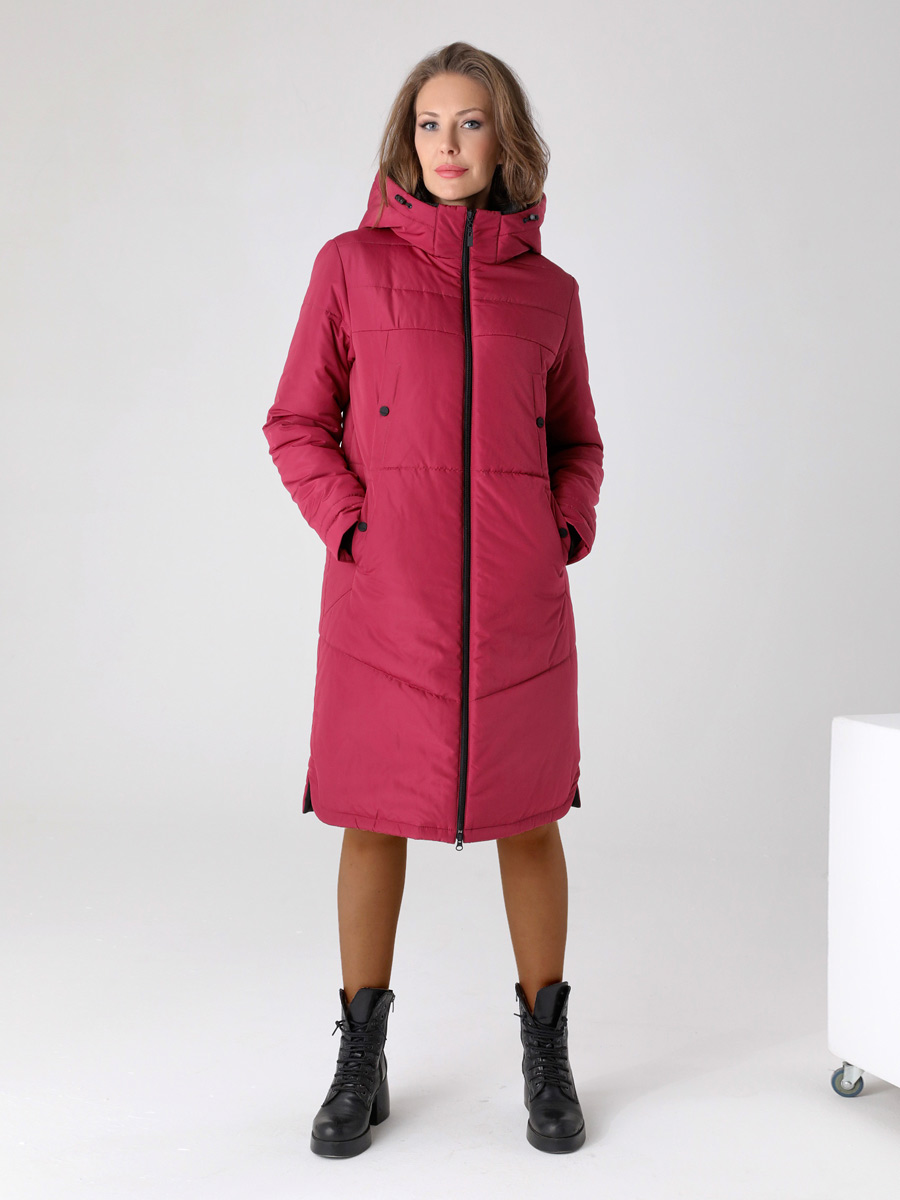Женское зимнее пальто в винном цвете большх размеров прямого силуэта от бренда dizzy way (Диззи вэй)