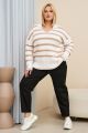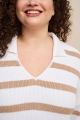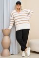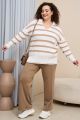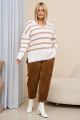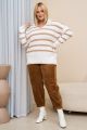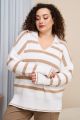 Женский бежевый в полоску джемпер больших размеров с воротником поло из трикотажа от бренда intikoma (Интикома). Стильный оверсайз джемпер с ультрамодным воротником поло, выполнен из мягкого трикотажа на основе вискозы с добовлением кашемира, приятен к телу и комфортный в носке. Свободный крой подходит для любого типа фигуры, V-образный вырез горловины придает пикантность образу, по бокам джемпера разрезы. Модель представленна в двух цветах в бежевой полоске и серой полоске.