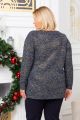 Женский синий джемпер из трикотажа с люрексом больших размеров от бренда intikoma (Интикома). Джемпер нарядный из качественного трикотажа с люрексом. Современный стильный дизайн подчеркнут Вашу индивидуальность и придадут уверенность в себе. Свободный, удлиненный крой джемпера не сковывает движения. Джемпер подойдет для создания стильного женственного образа на мероприятие так же на каждый день отлично смотрится с классическими брюками, брюками палаццо, и юбками. Детали: округлая горловина с аккуратным вырезом на груди в виде капельки, декоративный запах зафиксированный пряжкой и поясом на талии который выгодно подчеркивает фигуру.
