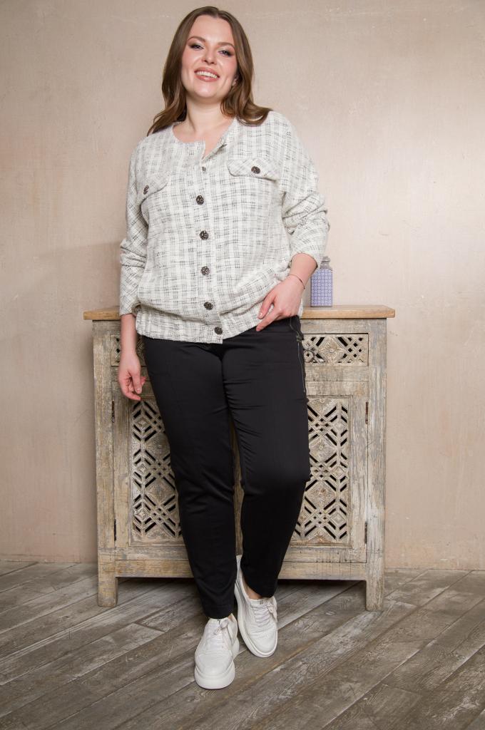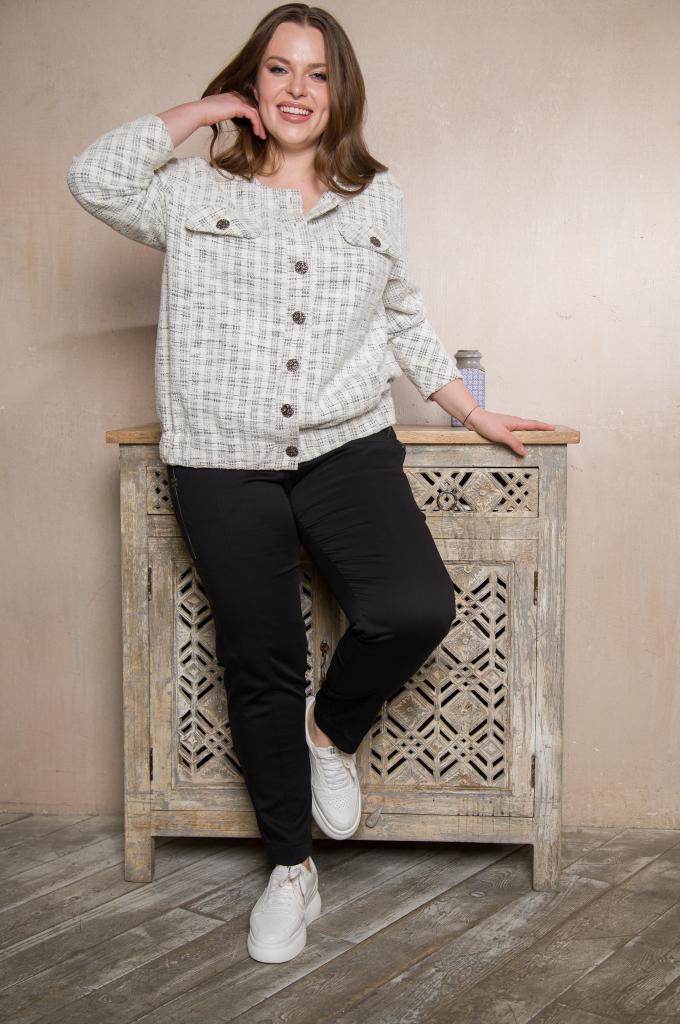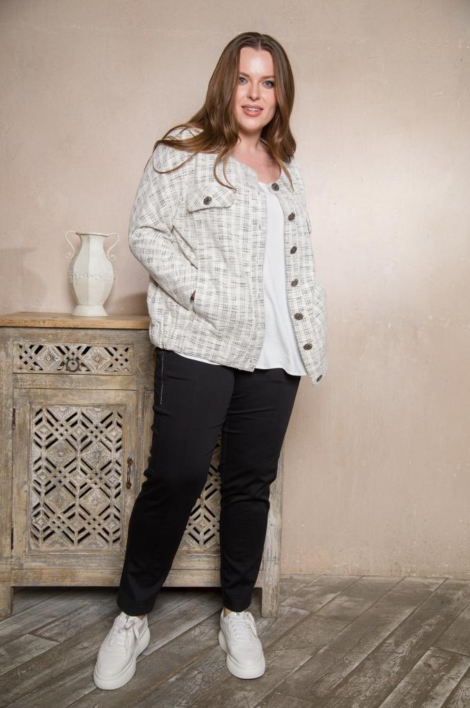 Описание: Женский молочный твидовый жакет в клетку больших размеров от бренда Терра (Terra). Жакет на пуговицах