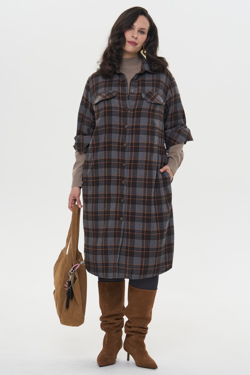 Женский молочный твидовый жакет в клетку больших размеров от бренда Терра (Terra). Жакет на пуговицах