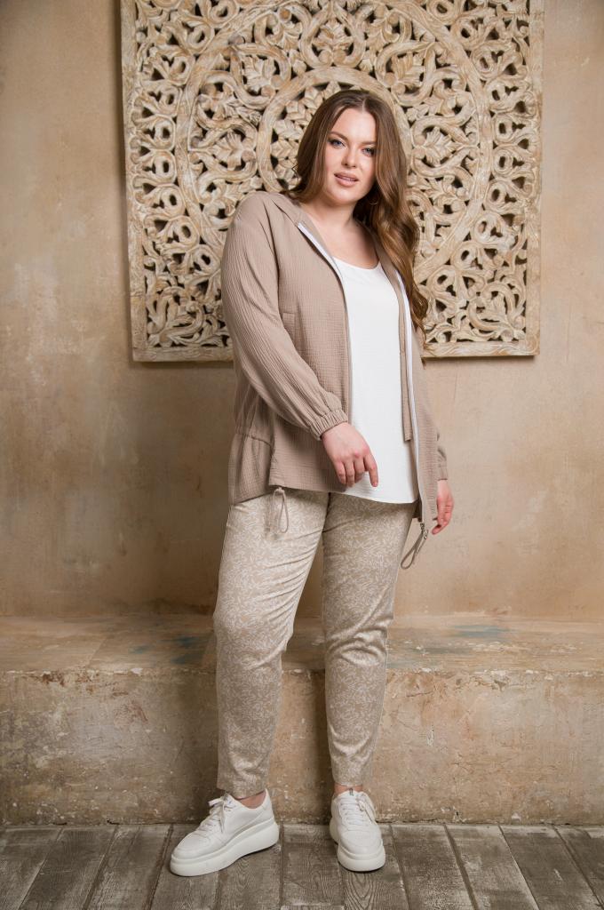 Описание: Женские бежевые брюки с принтом зауженные книзу больших размеров из хлопка от бренда Терра (Terra)