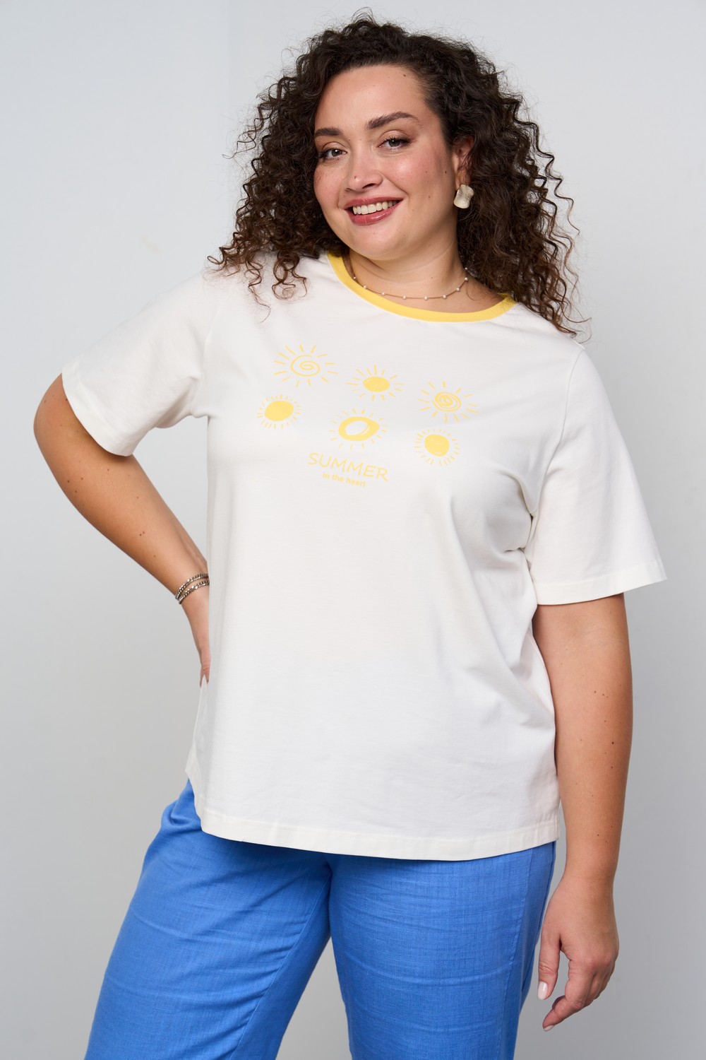 Женская синяя туника больших размеров с открытым плечом от бренда Терра (Terra)