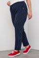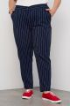 Женские темно-синие зауженные брюки больших размеров в полоску из полувискозы от бренда Интикома (Intikoma). Изготовлены из поливискозы, что делает их прочными и износостойкими.Брюки гармонично сочетаются с блузками и рубашками разных стилей, отличный вариант повседневного капсульного гардероба. Детали: карманы по переду функциональные. Застежка - пуговица на поясе, гульфик на молнии. Пояс частично на резинке. По низу не большие разрезы