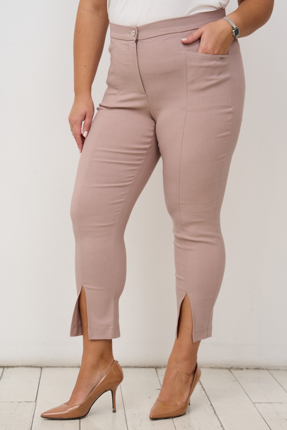 Описание: Женские серо-розовые брюки свободного кроя больших размеров со стрелками от бренда Интикома (Intikoma). Комфортные,классические брюки выполнены из поливискозного текстиля с добавлением эластана, изделие не мнется и идеально садится по фигуре. Брюки классического слегка зауженного кроя характеризуется традиционной брючной посадкой на талии. Благодаря резинке на талии брюки подходят разным типам фигур. Легкие стрелки добавят элегантности. Функциональные карманы. Застежка-гульфик на молнии. Пояс на молнию и пуговицу. На спине кокетка и карманы в шве. Модель брюк представлена в двух цветах в серо-розовом и синем.