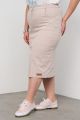 Женская бежевая прямая юбка больших размеров из хлопкового денима от бренда Интикома (Intikoma). Прочный лёгкий материал отлично тянется, обеспечивая не сковывающую движений посадку. Модель прямого силуэта, с притачным поясом частично на резинке со шлёвками под ремень, застёжкой по переду на пуговицу и гульфик на молнию, карманы по переду, по спинке кокетка и шлица. Юбку в стиле кэжуал можно дополнить актуальными блузами или легкими топами, беспроигрышный выбор для модниц.