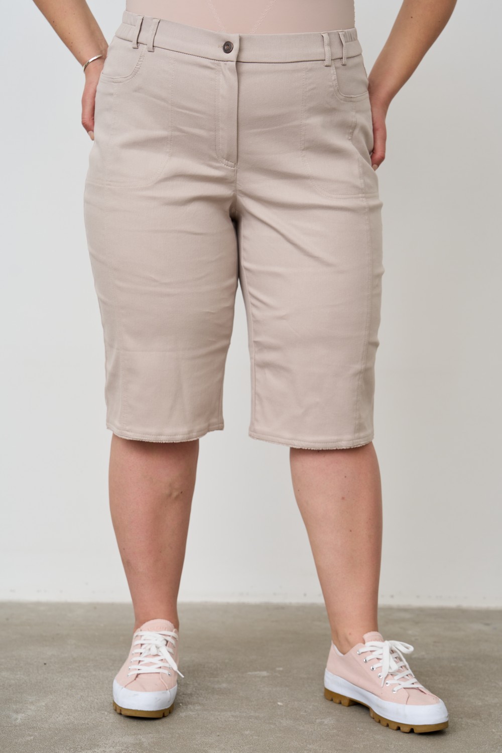 Описание: Женские бежевые шорты больших размеров из мягкой джинсы от бренда Интикома (Intikoma). Легко сочетается с любым верхом и обувью. Детали: прямой силуэт, застежка центральная по переду на пуговице и молнии, пояс частично на резинке для удобства в талии,по переду и спинке рельефы, по спинке кокетка. Модель представлена в 3 цветах классическом белом, нежном сиреневом, бежевом.