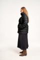 Женская демисезонная черная куртка больших размеров прямого силуэта с кулиской на талии от бренда Модресс (Modress). Куртка длиной ниже линии бедер. Воротник –пухлая высокая стойка. Рукава втачные, двухшовные. Карманы выполнены в рельефных швах и застегиваются на потайные молнии. Нагрудная вытачка обеспечивает хорошую посадку. Куртка застегивается на декоративные кнопки.