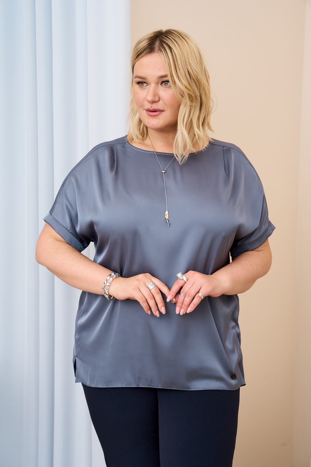 Женская голубая блузка больших размеров с ассиметричным кроем из вискозы от бренда Интикома (Intikoma). Мягкая, приятная, струящаяся ткань с содержанием вискозы, создает безупречный фасон стильной модели. Детали: ассиметричный крой блузки, деталь волана придает воздушность и загадку образу, рукав длиной ¾, горловина округлая. Блузка представлена в двух цветах в оттенке пыльной розы и нежном голубом.