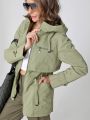 Описание: Женская демисезонная оливковая ветровка больших размеров от бренда Диззи вэй (Dizzy way). Свободный прямой силуэт универсален и подходит для всех типов фигур. Большая размерная сетка позволит вам легко подобрать нужный вариант. Есть декоративный элемент - кокетка. Воротник-стойка переходит в регулируемый капюшон. Глубокие накладные карманы с кнопкой подходят для хранения мелочей. . Есть внутренний карман на молнии. Подкладка в изделии выполнена из ткани в мелкую полоску. Застежка в виде двухзамковой молнии делает модель удобной в использовании. Силуэт легко изменить при помощи кулиски.