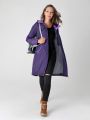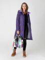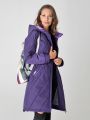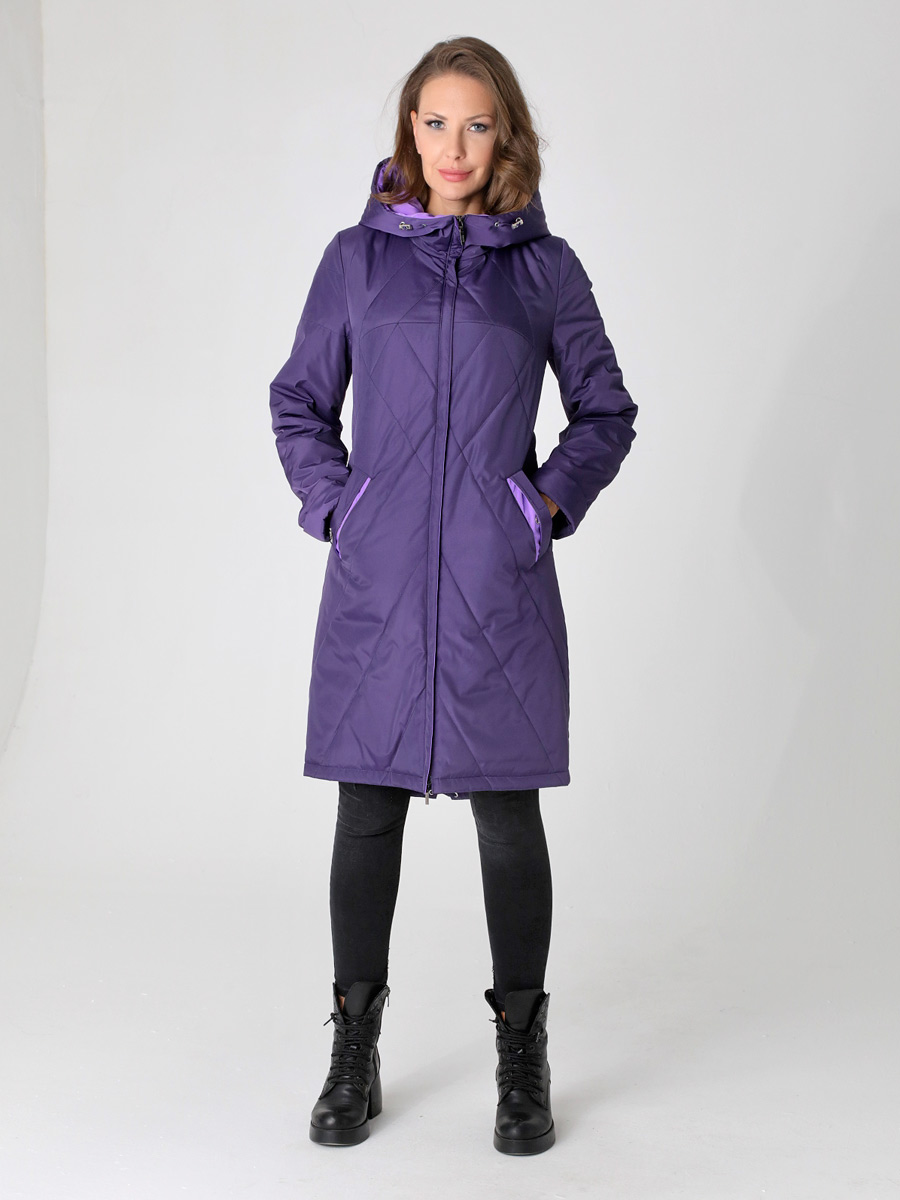 Женский демисезонный утепленный фиолетовый плащ больших размеров прямого силуэта от бренда Диззи вэй (Dizzy way). Застежка - на двухзамковую молнию, что позволяет регулировать ширину шага. Воротник - стойка, переходящая в капюшон. Удобно расположенные карманы застегиваются на кнопку. Есть потайной карман на молнии. Длина втачного рукава регулируется отворотом. Плащевая ткань имеет водоотталкивающую пропитку, которая выдержит небольшой дождь, снег и ветер. Хорошо зарекомендовавший себя утеплитель Холлофайбер, плотностью 100гр/м, защитит от весенней прохлады. Подкладка в изделии выполнена из ткани в мелкую полоску.
