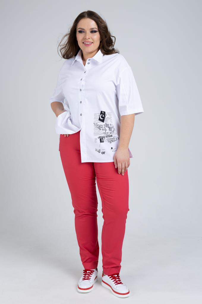 Описание: Женская белая рубашка больших размеров с принтом надписи от бренда Терра (Terra)